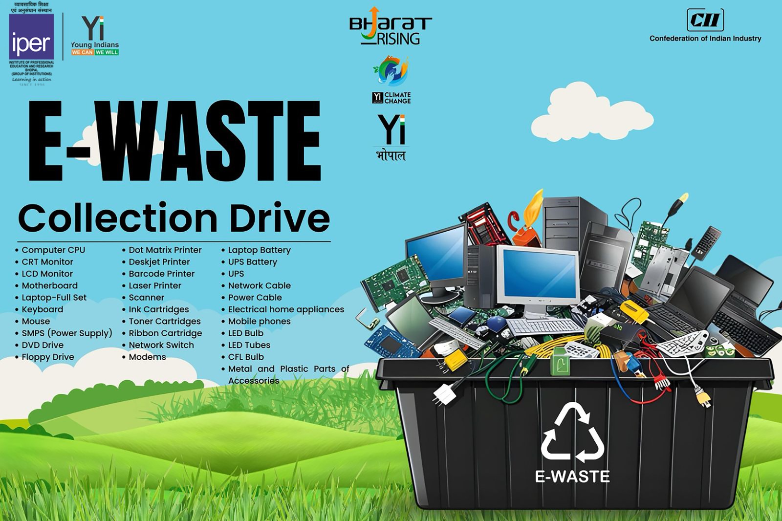 IPER, in collaboration with CII Young Indians (Yi) YUVA, successfully organized an E-Waste Collection Drive to promote sustainability and eco-conscious living.