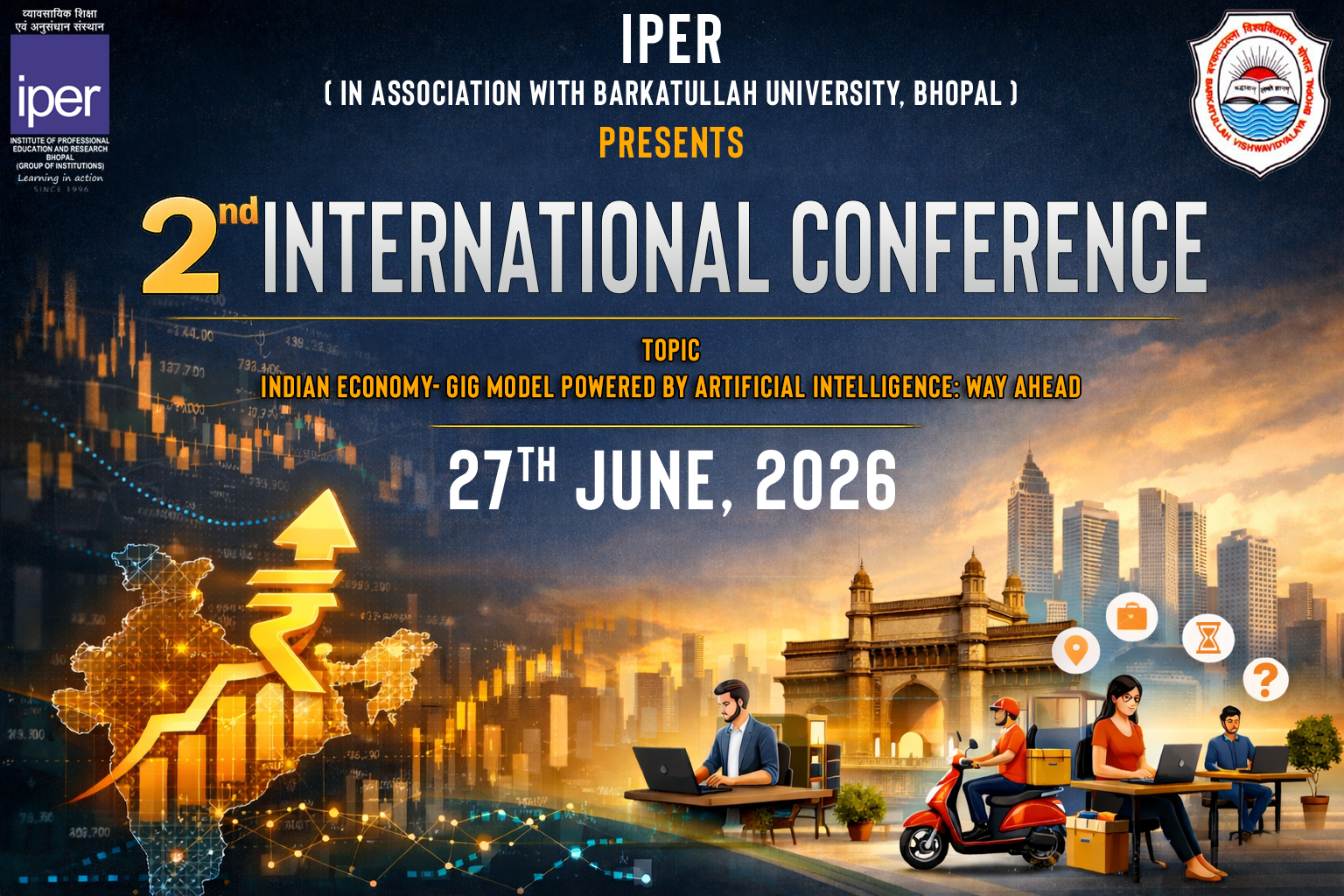 IPER Bhopal in collaboration with Barkatullah University Bhopal, is hosting its 2nd International Conference to examine the GIG model’s role in India’s economic future powered by AI. The event unites experts to discuss growth opportunities and hurdles in the gig economy, building on insights from digital platforms and workforce shifts. Held at IPER Bhopal, it emphasizes actionable strategies for sustainable development. This event builds on the success of the inaugural conference by uniting academicians, policymakers, industry leaders, researchers, and gig economy